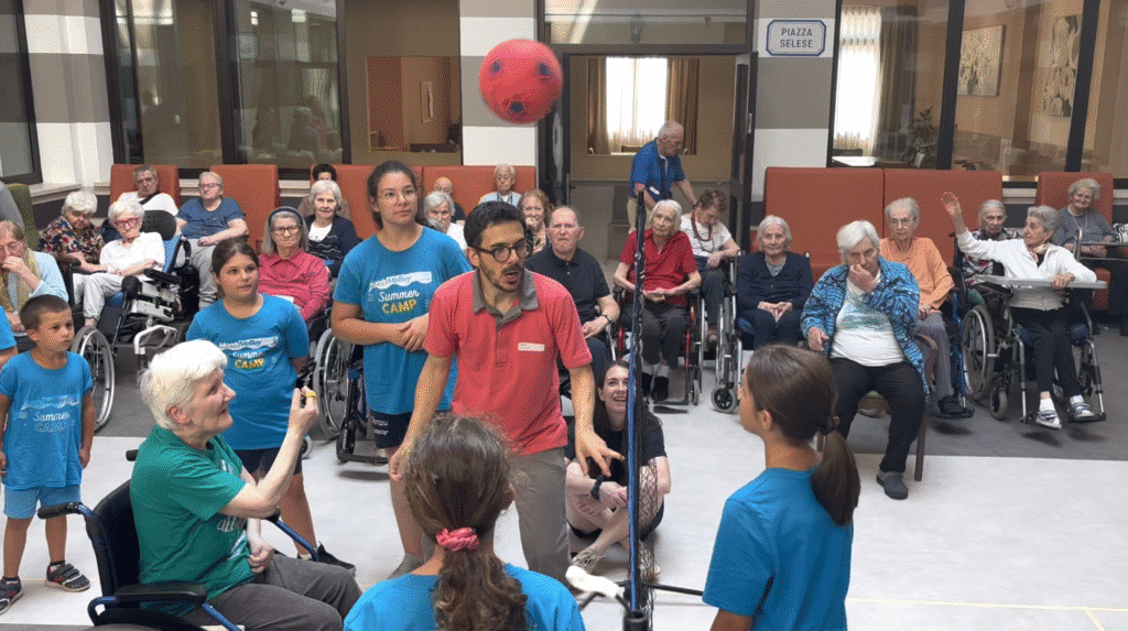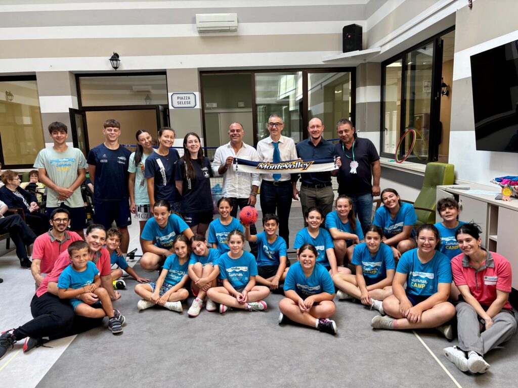 Durante la primavera, giovani atleti e atlete del Montevolley hanno partecipato a tre allenamenti speciali con i residenti dell’Umberto I, condividendo esercizi e mini-partite di pallavolo, creando un clima di allegria e dialogo. In seguito, nell’ambito del Montevolley Summer Camp, 18 ragazzi e ragazze hanno offerto una vera e propria esibizione pallavolistica nell’Agorà del centro, trasformato per l’occasione in un campo da gioco.
