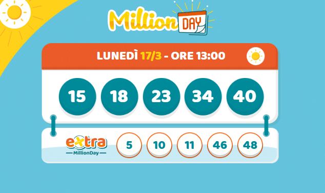 MillionDay e Million Day Extra di oggi lunedì 17 marzo 2025, estrazione ore 13
