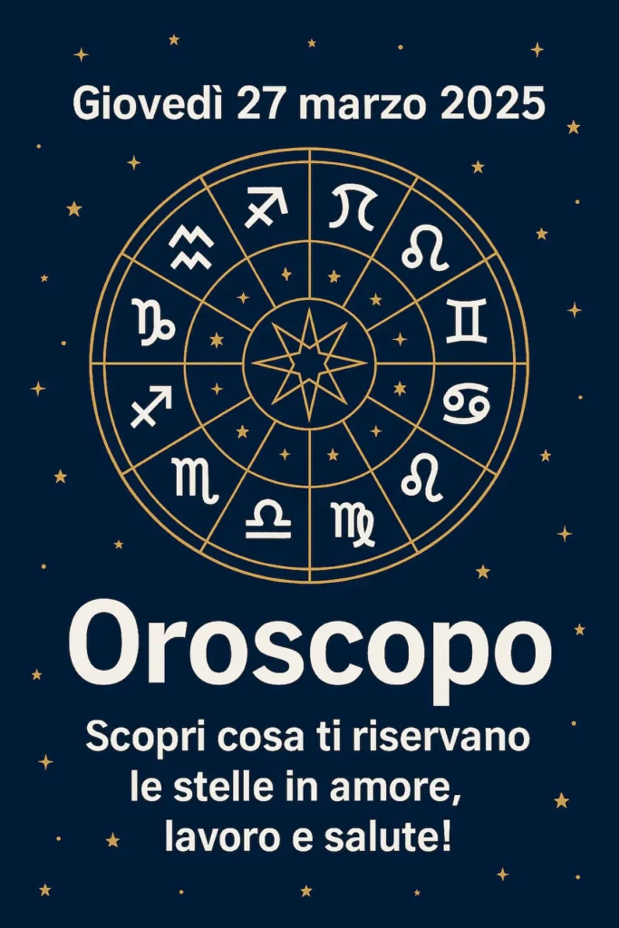 Scopri l'oroscopo di giovedì 27 marzo 2025 per amore, lavoro e salute. Le stelle ti guideranno verso decisioni importanti in tutti gli ambiti della vita.