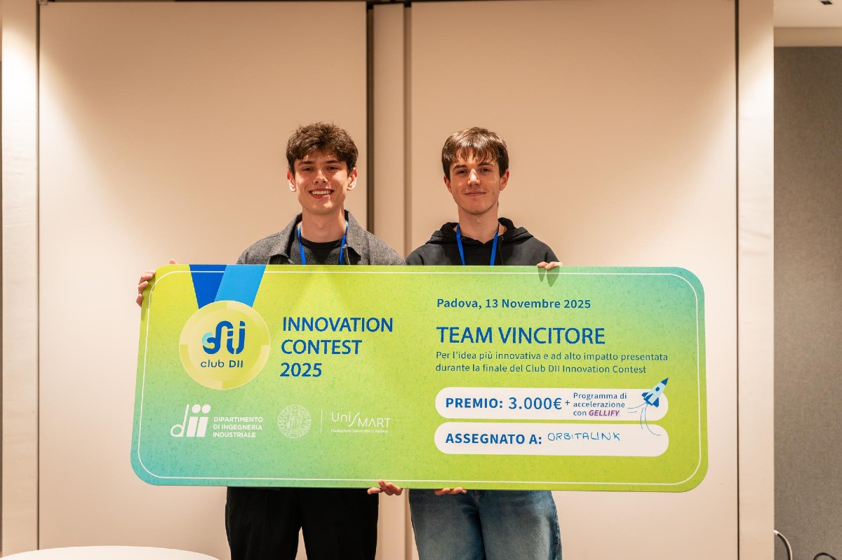 PADOVA – Un debutto che lascia il segno: la prima edizione del Club DII Innovation Contest, promossa dal Club DII con il supporto del Dipartimento di Ingegneria Industriale dell’Università di Padova, ha riunito 100 partecipanti e presentato 10 progetti innovativi capaci di coniugare tecnologia, imprenditorialità e visione. La finale, ospitata giovedì 13 novembre negli spazi di Le Village by CA Triveneto, ha visto trionfare Orbitalink e Furniture as a service, idee nate dall’incontro tra giovani talenti e aziende del territorio.