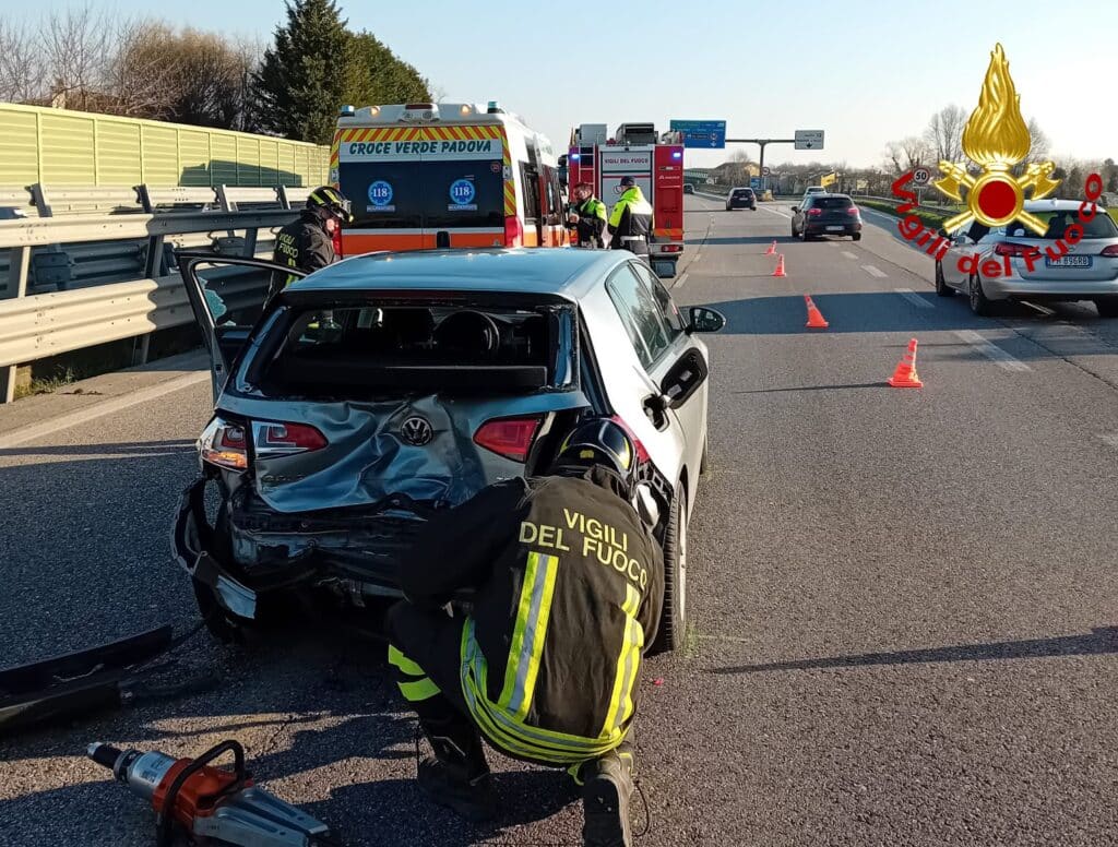 Incidente a Padova in via Primo Maggio: tre veicoli coinvolti, due feriti e traffico deviato. Intervengono i Vigili del Fuoco e la Polizia Locale.
