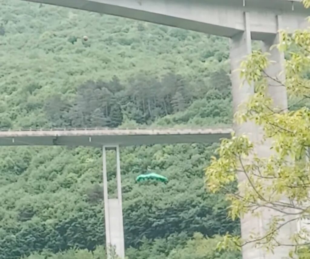 Scena surreale in A27: tre persone si lanciano dal viadotto con il paracadute