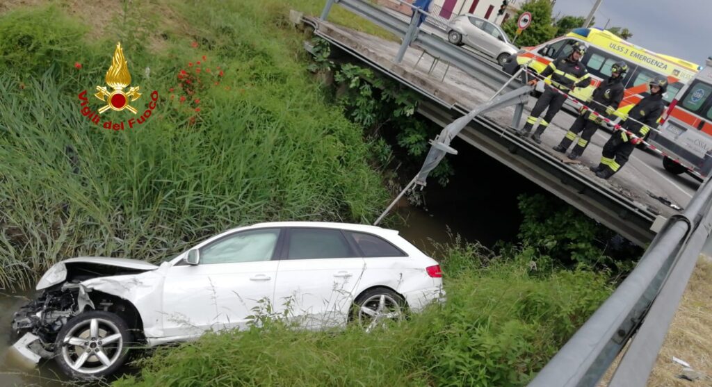 I pompieri arrivati da Mestre anche con l’autogrù, hanno messo in sicurezza i mezzi ed estratto il conducente dall’auto finita nel fossato.