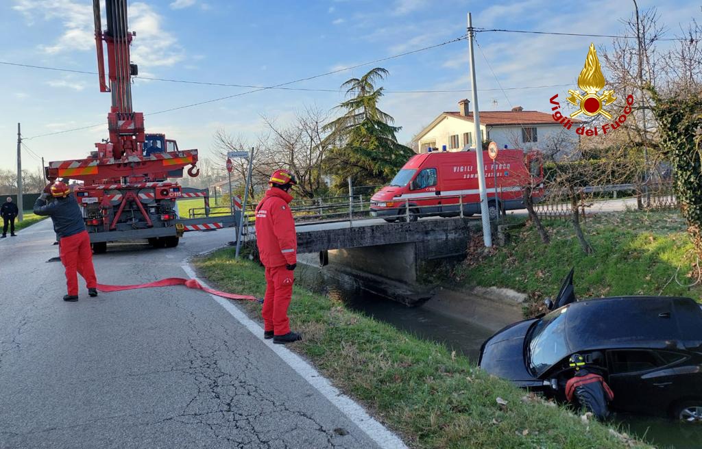 Alle 7:40, i vigili del fuoco sono intervenuti lungo Strada del Parauro incrocio con Via Semitecolo a Noale in provincia di Venezia, per un’auto finita nel fossato con due persone a bordo rimaste ferite.