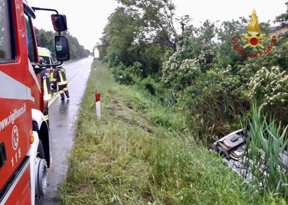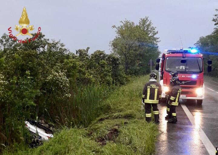 Intervento dei vigili del fuoco stamattina intorno alle 5 per un’auto finita nel fossato lungo strada Margherita a Sant’Anna di Chioggia (VE).