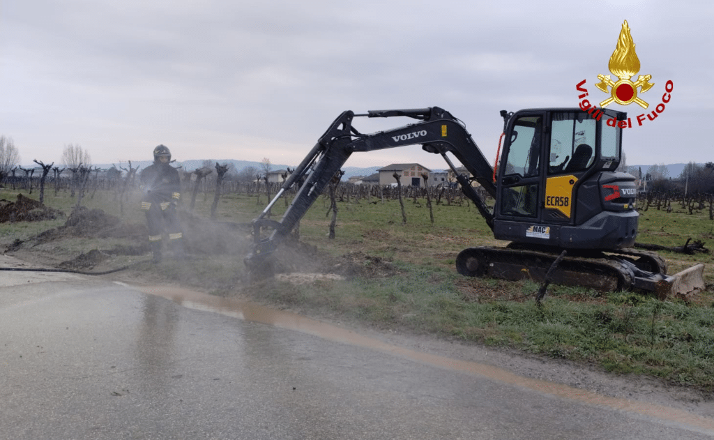 LONIGO (VICENZA) - Dalle 10:00 di sabato 8 febbraio, i vigili del fuoco sono intervenuti in Via del Lavoro a Lonigo, a causa di una perdita di gas metano di media pressione. L’incidente è avvenuto durante i lavori di posa di alcuni pali per viti, che hanno danneggiato una tubazione interrata.