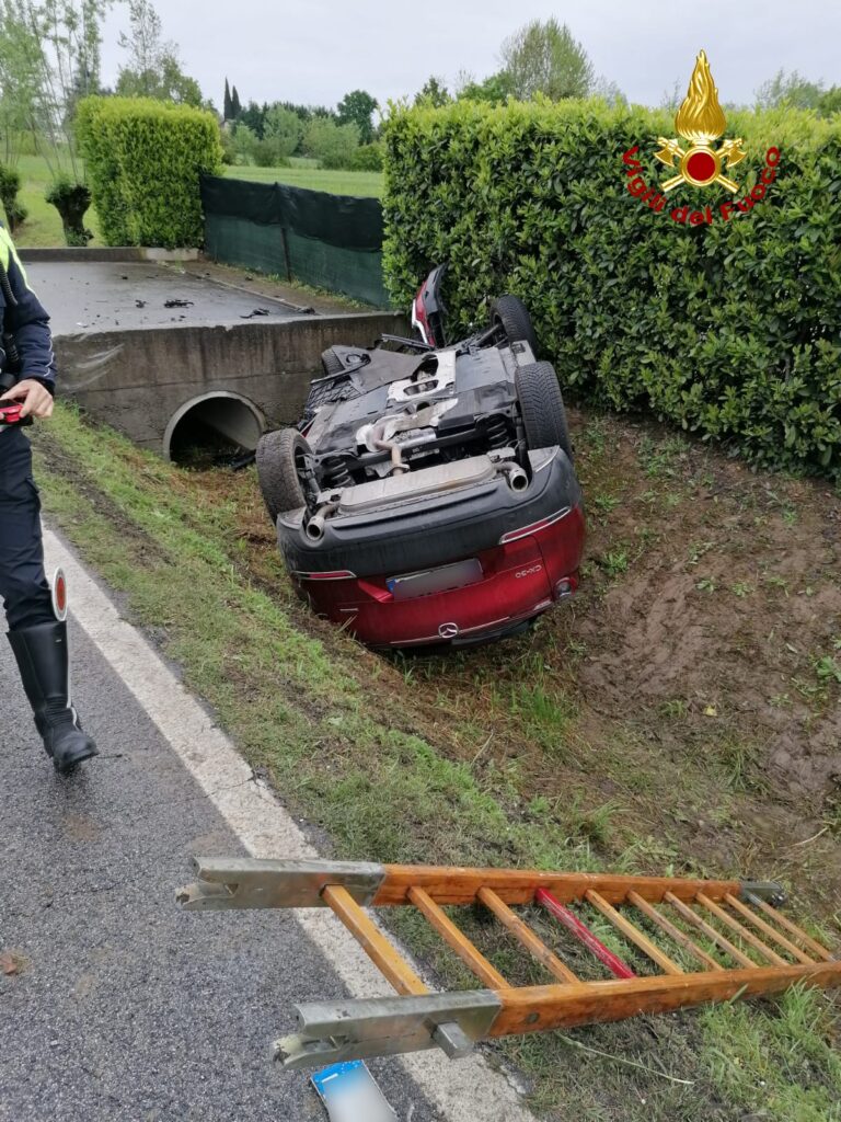 Piomba con l'auto nel fossato dopo aver perso il controllo: grave il conducente