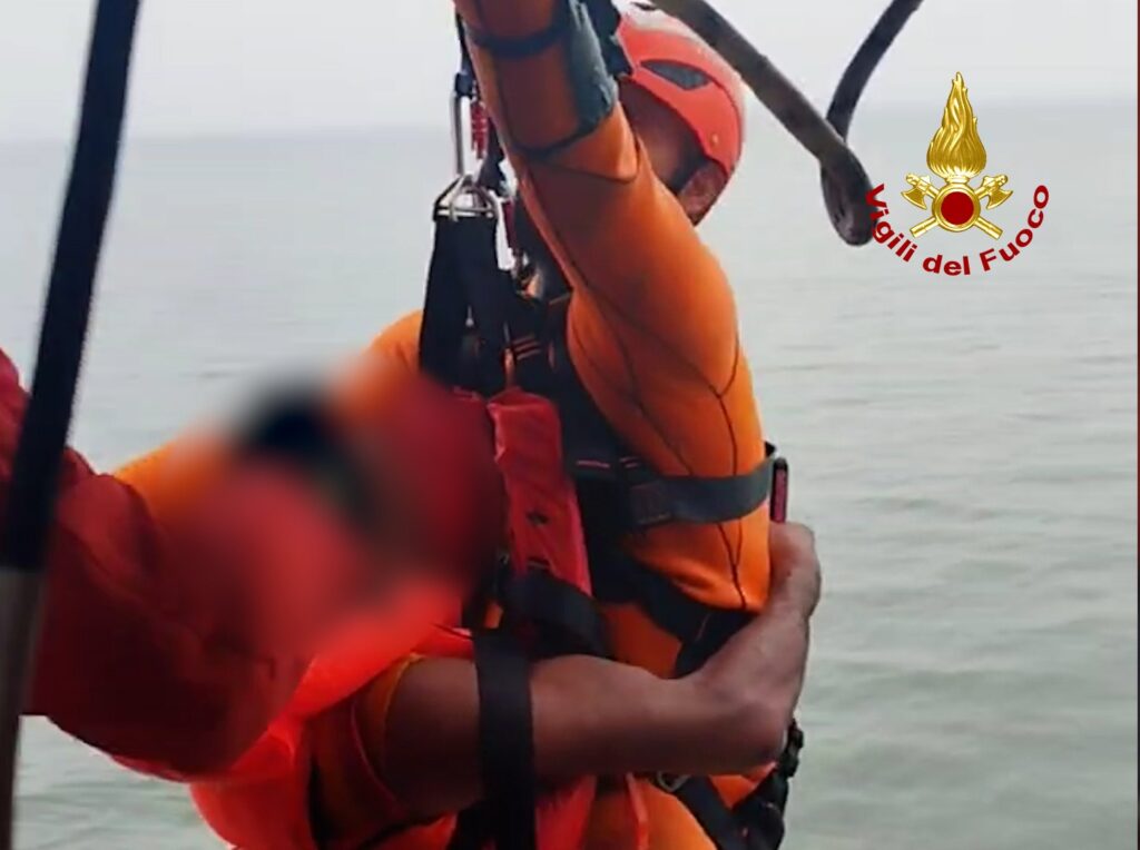 Un sommozzatore si è calato in acqua e ha raggiunto l’uomo, che è stato imbragato e issato a bordo dell’elicottero grazie al verricello. Fortunatamente, il naufrago si trovava in buone condizioni di salute. Dopo il salvataggio, è stato trasportato a Porto Viro, dove un’ambulanza del Suem lo ha preso in carico per un controllo sanitario.
