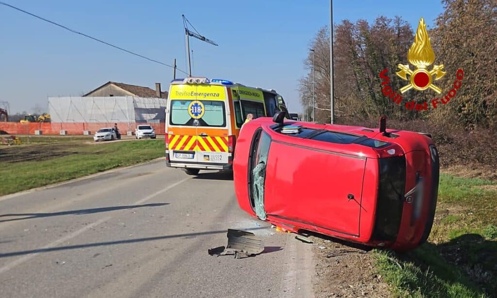 QUINTO DI TREVISO (TV) - Un incidente stradale si è verificato alle 10:40 di oggi, giovedì 20 febbraio, in via Comarotta, a Quinto di Treviso, dove due auto si sono scontrate. Una delle vetture è finita rovesciata su una fiancata, mentre l'altra ha terminato la sua corsa fuori strada, nel campo agricolo adiacente.