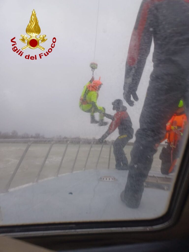 Gli elisoccorritori sono stati verricellati sull’imbarcazione recuperando uno alla volta le tre persone.