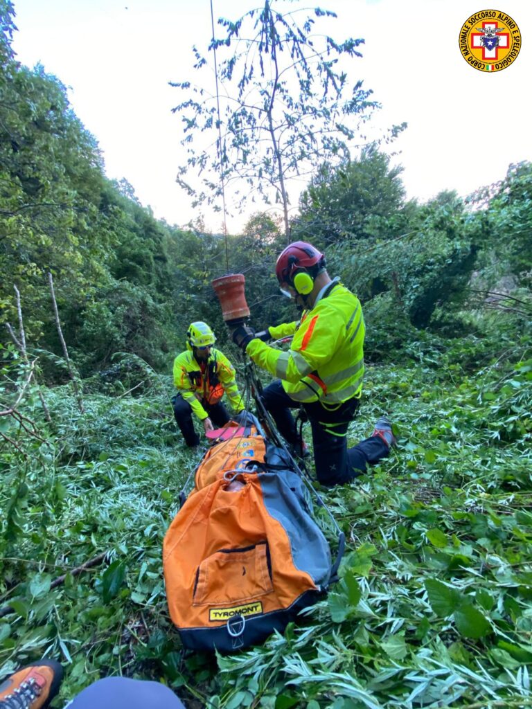 Sbarcati con il verricello equipe medica e tecnico di elisoccorso, sono state subito verificate le condizioni del ferito, imbarellato e spostato in un punto agevole per il recupero.