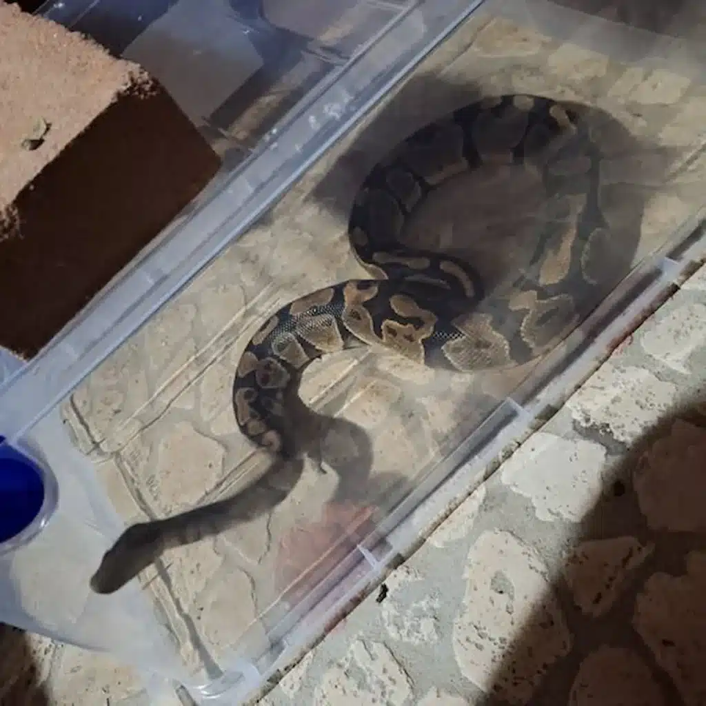 Il Python regius è una specie non velenosa, comune nel commercio di animali da compagnia. È noto per l’indole docile e l’origine dall’Africa subsahariana. Pur non essendo pericoloso come i serpenti velenosi, in ambiente urbano necessita di gestione controllata.