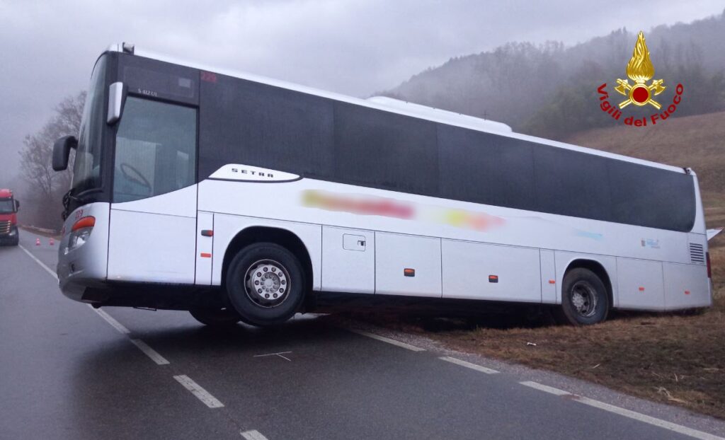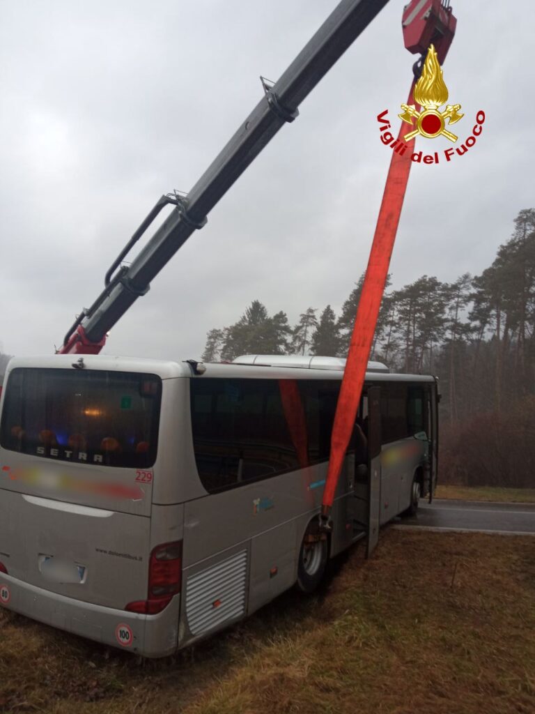 FARRA D’ALPAGO (BELLUNO). Poco prima delle 7:00, di oggi venerdì 9 febbraio, i vigili del fuoco sono intervenuti lungo la SP 422 nel comune di Farra d’Alpago per il recupero di un bus finito fuori dalla sede stradale in mezzo all’erba a causa di una errata manovra.