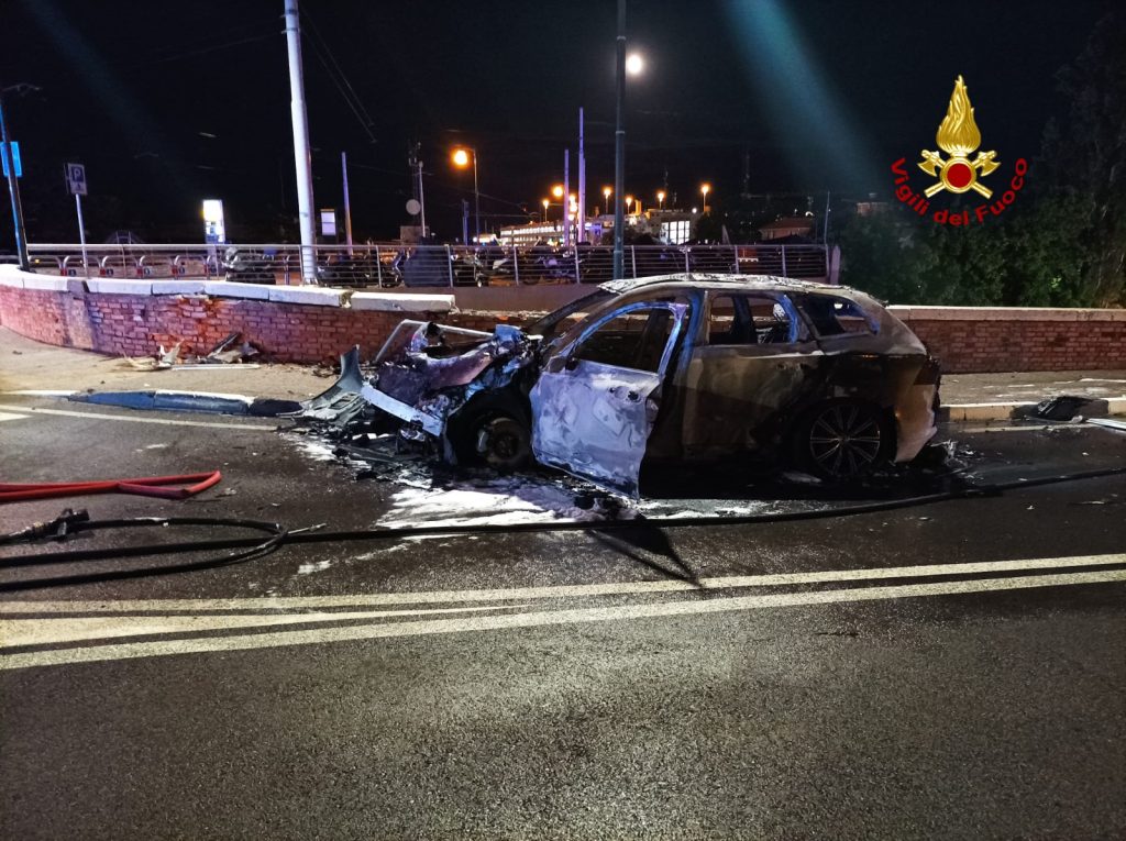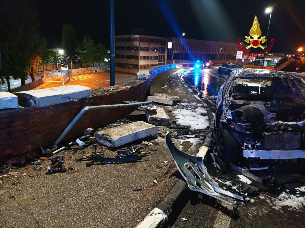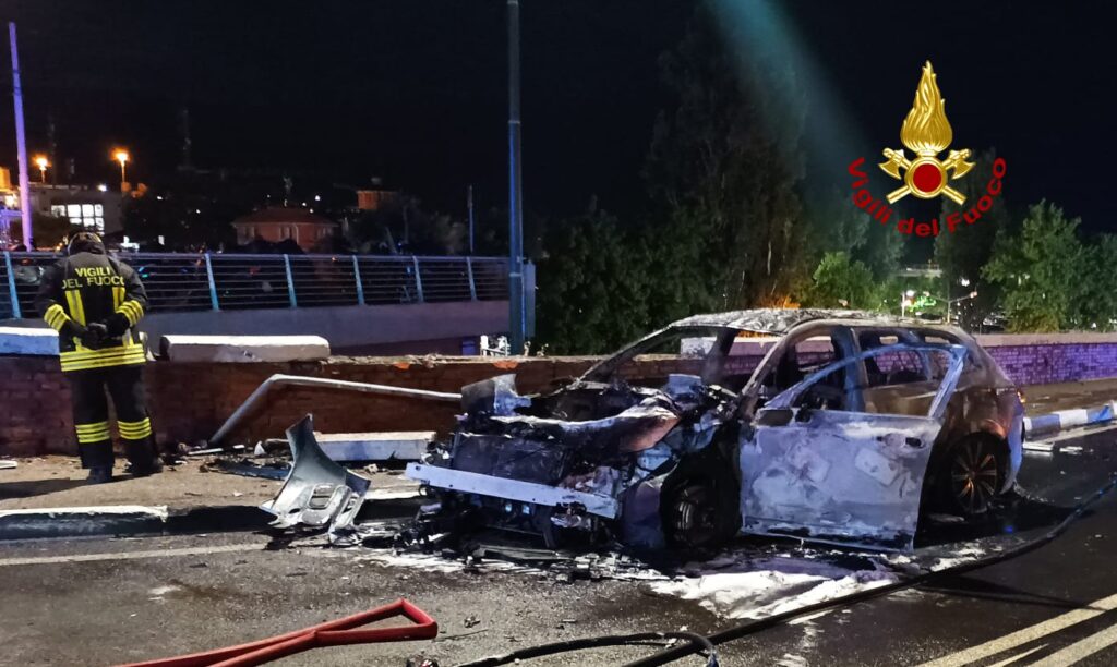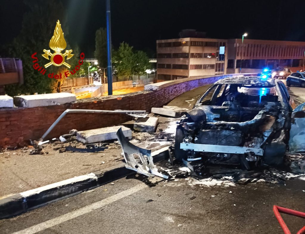 Schianto contro un muretto, poi l'incendio dell'auto: gravissimo il conducente