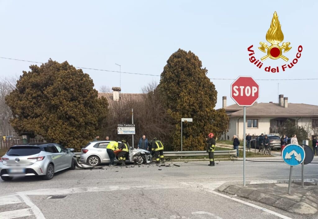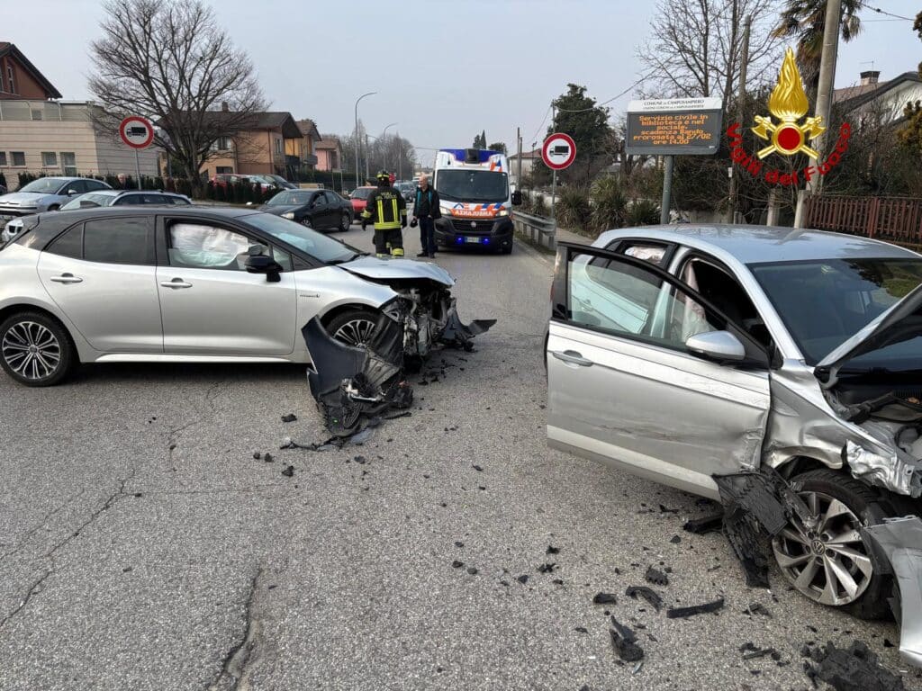 Incidente a Camposampiero sabato 22 febbraio 2025: due feriti e intervento dei vigili del fuoco per mettere in sicurezza i veicoli. Traffico deviato.