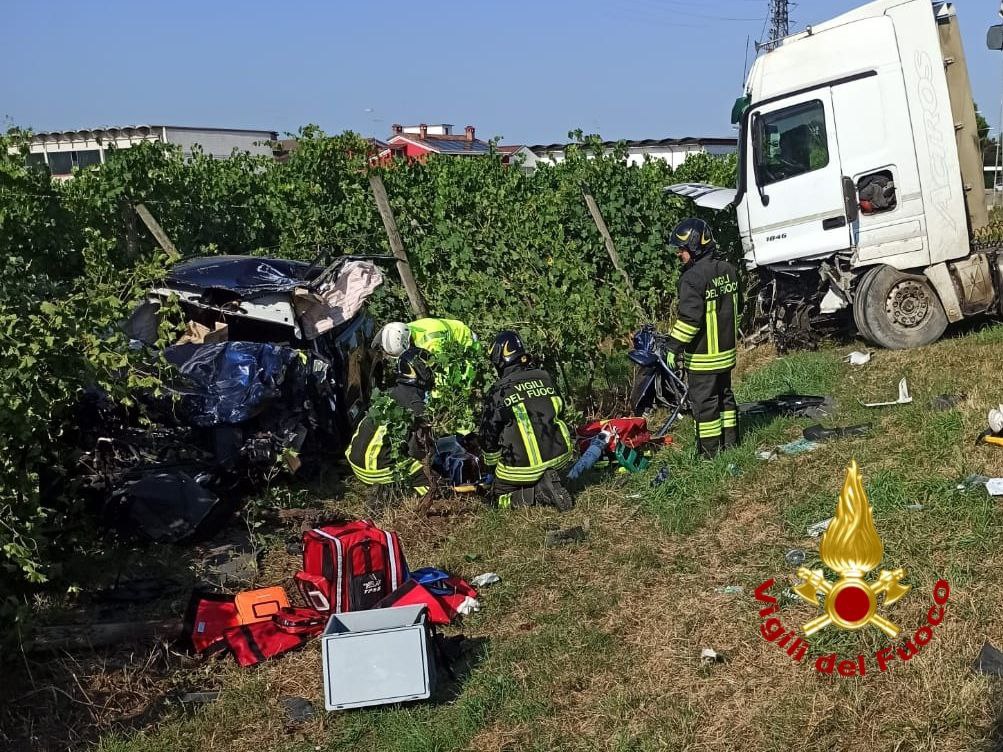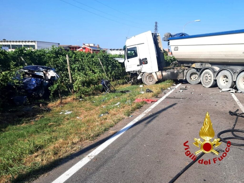Successivamente i pompieri hanno provveduto a mettere in sicurezza il mezzo pesante, che a causa dello scontro perdeva carburante dal serbatoio, e l'autovettura.