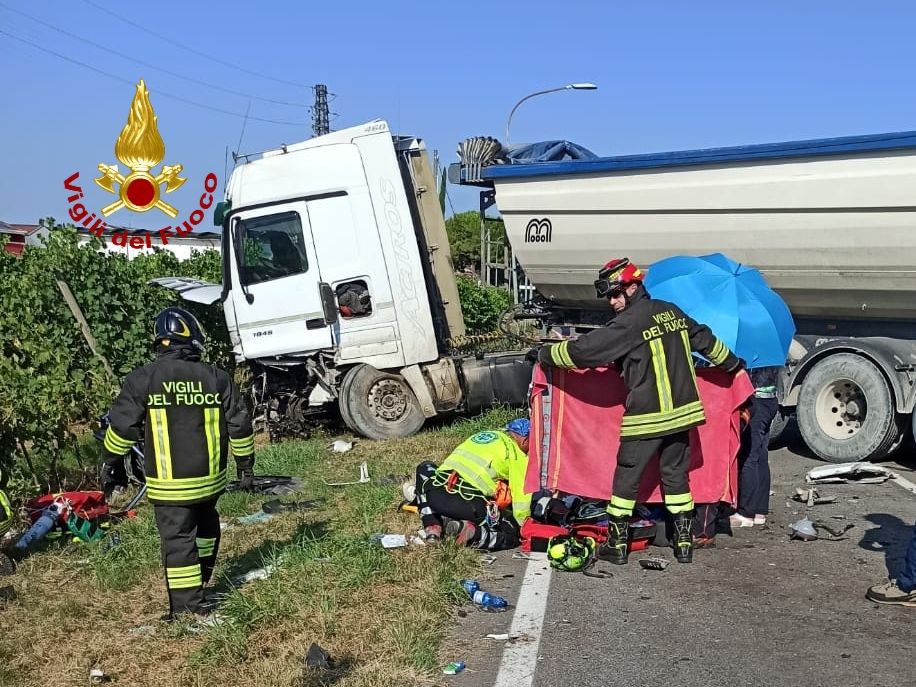 Tremendo scontro frontale tra mezzo pesante e auto: tre giovani feriti gravemente