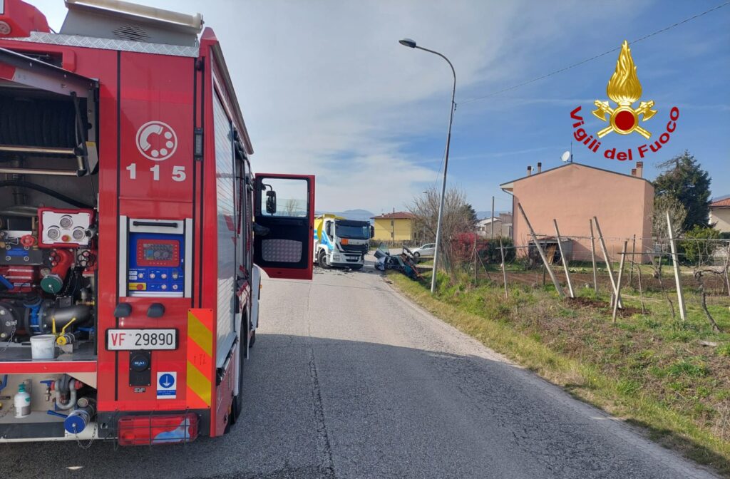 GAMBELLARA (VICENZA). Alle 11:15, di giovedì, i vigili del fuoco sono intervenuti in Via Calderina a Gambellara per un incidente frontale tra un’auto e un’autocisterna: deceduto l’automobilista.