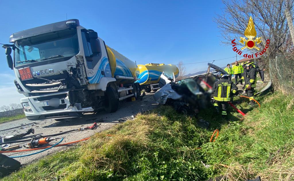 GAMBELLARA (VICENZA). Alle 11:15, di giovedì, i vigili del fuoco sono intervenuti in Via Calderina a Gambellara per un incidente frontale tra un’auto e un’autocisterna: deceduto l’automobilista. I pom...