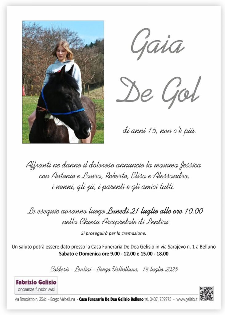 Gaia De Gol, 15 anni, perde la vita a Borgo Valbelluna travolta da un masso mentre scattava un selfie con le amiche sul Piave.