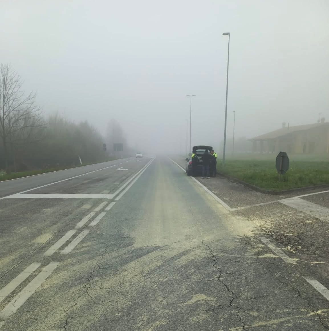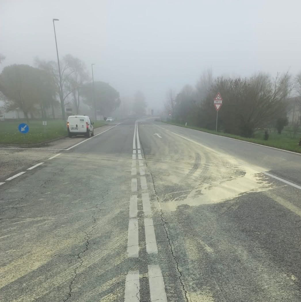 Liquame per 200 metri sulla S.R. 74 a San Michele al Tagliamento: "senso unico alternato" -