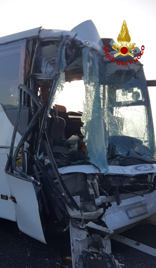 A bordo del bus 23 passeggeri e due autisti. I vigili del fuoco arrivati da Motta di Livenza, San Donà e Treviso con l’autogrù, hanno messo in sicurezza il mezzo, mentre i passeggeri sono stati assistiti dal personale delle squadre e da quello sanitario arrivato con più ambulanze.