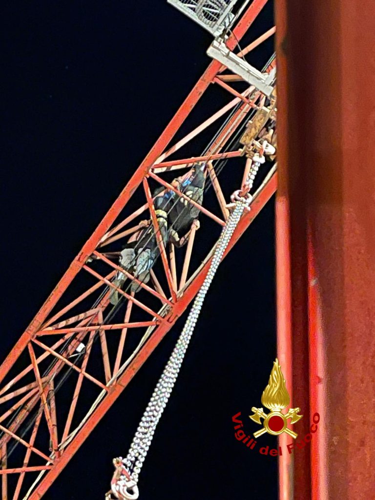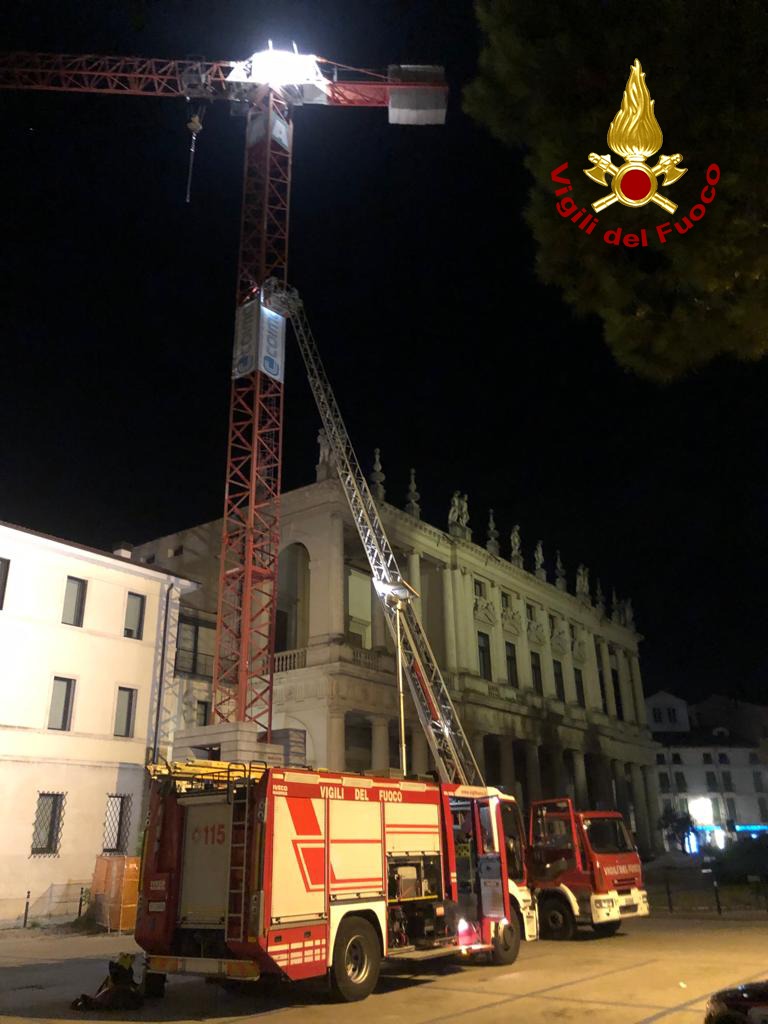 La notte scorsa poco dopo la mezzanotte, i vigili del fuoco sono intervenuti, in centro storico, in Piazza Matteotti a Vicenza per soccorrere un giovane salito sul braccio laterale della gru edile a circa 50 metri di altezza per fare delle foto.