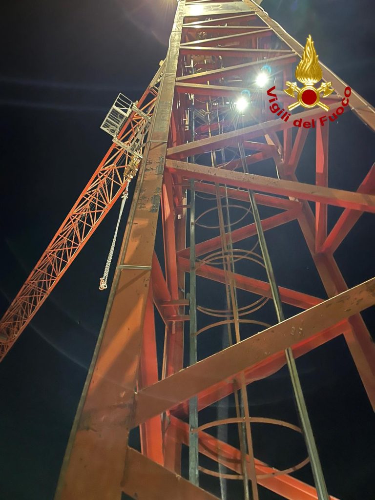 Il giovane era nel frattempo in contatto telefonico con il personale del 118. Due operatori SAF esperti, hanno raggiunto il giovane mettendolo in sicurezza facendogli indossare e iniziando cosi il percorso a ritroso, prima del braccio laterale e poi del traliccio.
