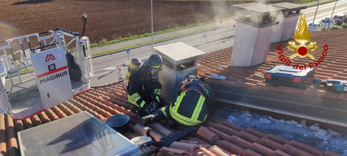 Brucia l'isolante nell’intercapedine tra due villette a schiera: i pompieri evitano il peggio