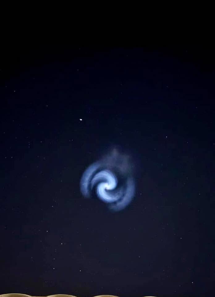 La spirale luminosa è il risultato della combinazione dei gas e dei carburanti emessi nella fase finale del lancio, che si mescolano con l'atmosfera terrestre, creando un effetto visivo straordinario, visibile anche a migliaia di chilometri di distanza. La sua forma perfetta, che ricorda un vortice o un fumo che si avvolge su se stesso, ha lasciato senza parole chi ha avuto la fortuna di assistervi.