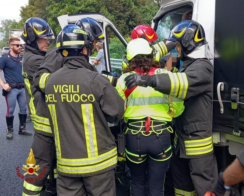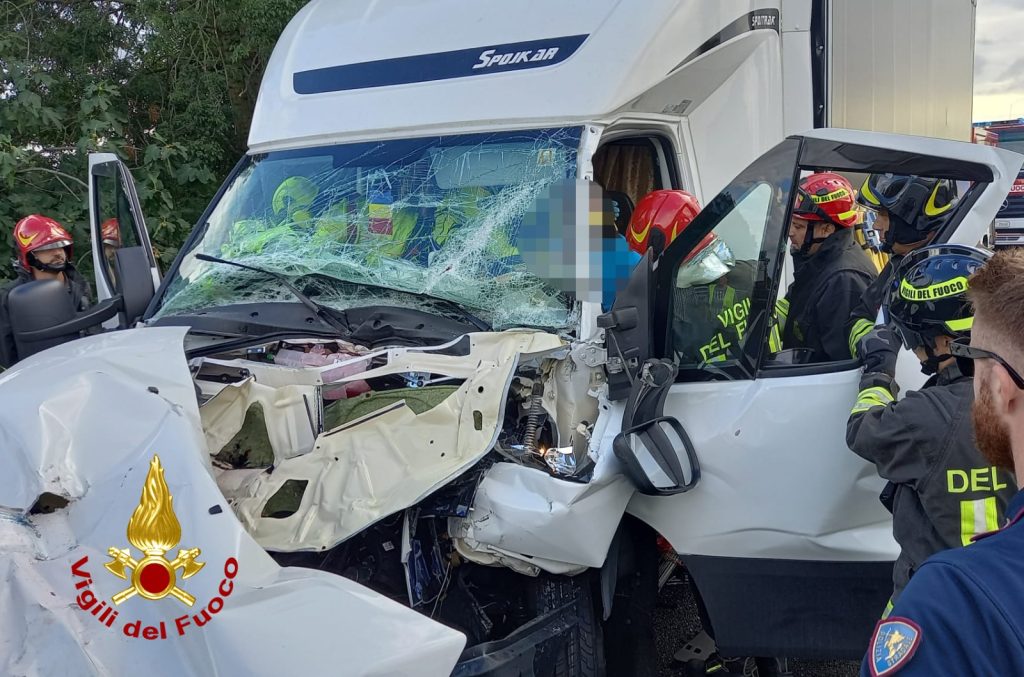 Tamponamento in A4 tra furgone e Tir: un ferito, incastrato tra le lamiere