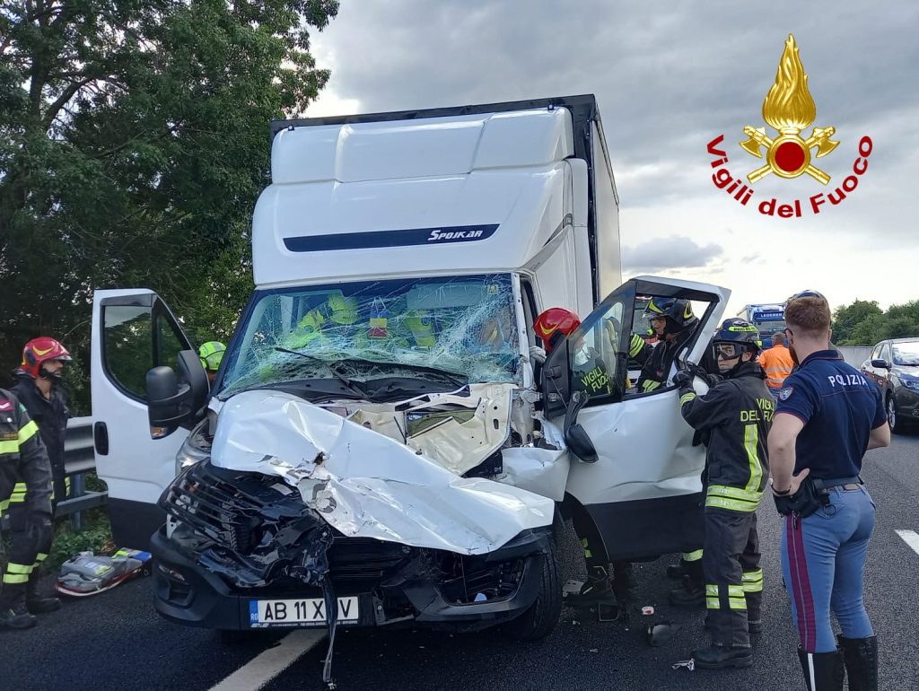 Tamponamento in A4 tra furgone e Tir: un ferito, incastrato tra le lamiere -