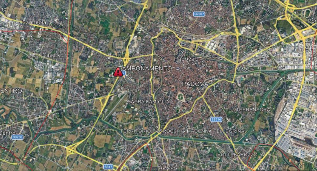 PADOVA – Nella mattinata di oggi si è verificato un tamponamento lungo la SR 47 “di Altichiero”, al km 4+450 in direzione Padova Ovest, nel territorio comunale di Padova.