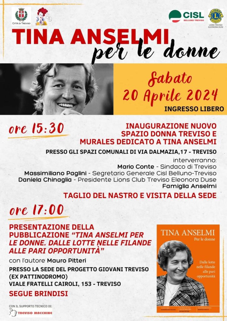 Alle 15.30, l'evento prenderà il via con l'inaugurazione dello Spazio Donna in via Dalmazia 17, un luogo pensato per promuovere e diffondere le pari opportunità tra uomo e donna. Contemporaneamente, verrà svelato il murale realizzato dall'artista Michele Peruch, un'opera finanziata dal Lions Club Treviso Eleonora Duse e dalla Cisl Belluno Treviso. Questa iniziativa mira a lasciare un segno tangibile del contributo di Anselmi all'emancipazione femminile e alla vita civica di Treviso.