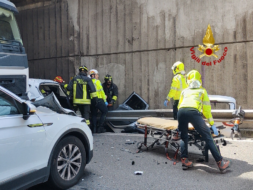 I pompieri, primi ad arrivare sul posto perché già nei pressi del luogo dell'evento, hanno lavorato a lungo per aprire un varco tra le lamiere ed estrarre in sicurezza il conducente della macchina maggiormente coinvolta, un 52enne veronese stabilizzato dal personale Suem e trasportato all'ospedale cittadino di borgo Trento.