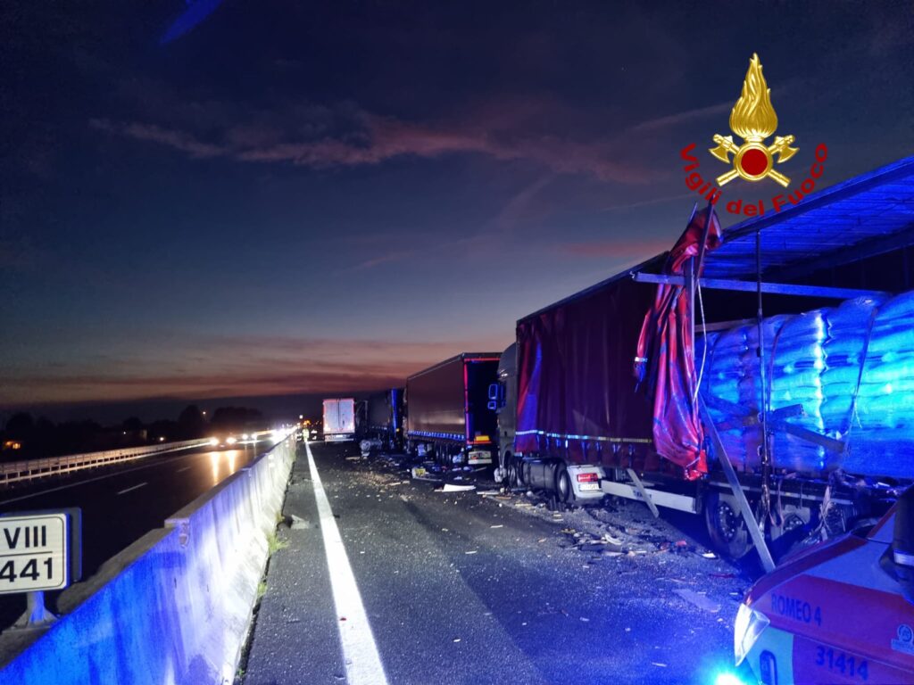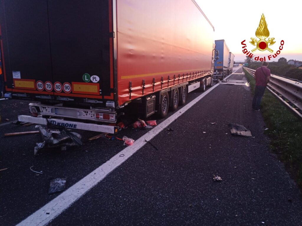 Alle 18:30, i vigili del fuoco sono intervenuti in autostrada A4 tra gli svincoli di Portogruaro e San Stino di Livenza al km 441 in direzione Venezia per un tamponamento tra quattro mezzi pesanti e u...