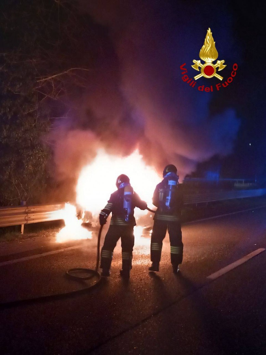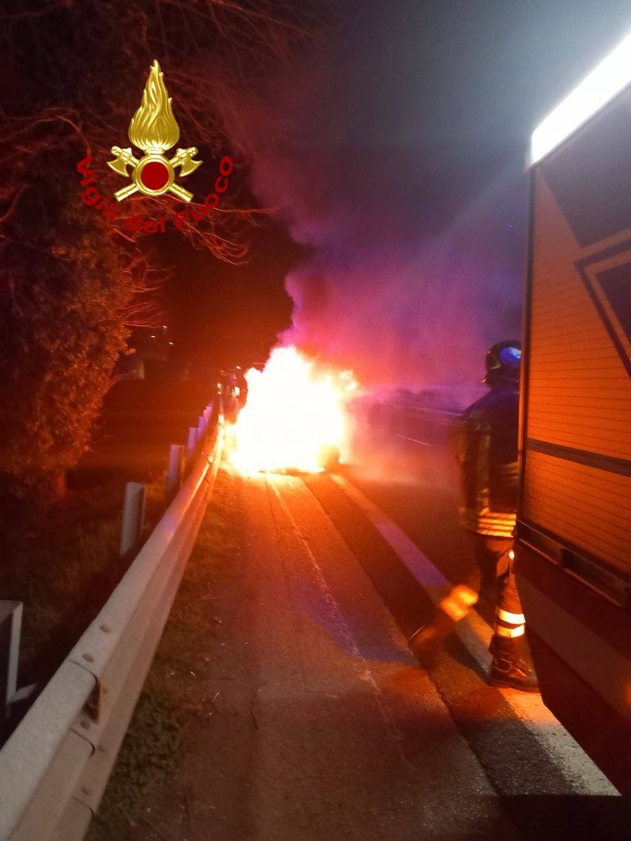 L’intervento è scattato alle 2.50, quando la Sala operativa ha ricevuto la segnalazione di un incendio auto in carreggiata. Sul posto è stata inviata una squadra dei Vigili del Fuoco di Treviso che ha raggiunto rapidamente il veicolo già interessato dalle fiamme.