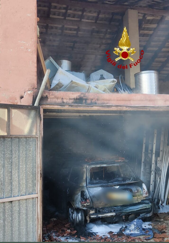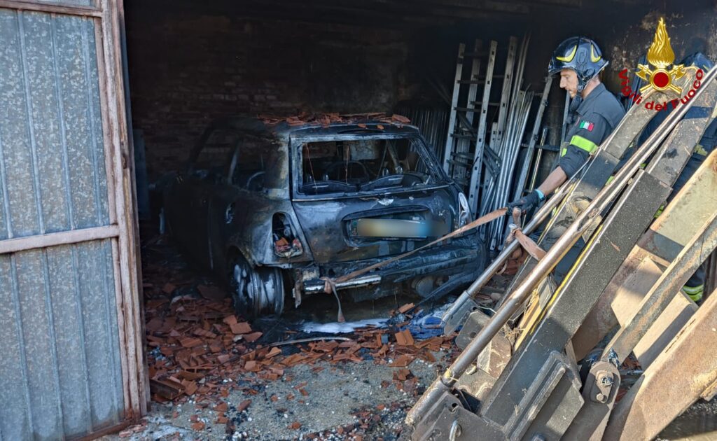 Va a fuoco un'automobile in un ricovero attrezzi: distrutta