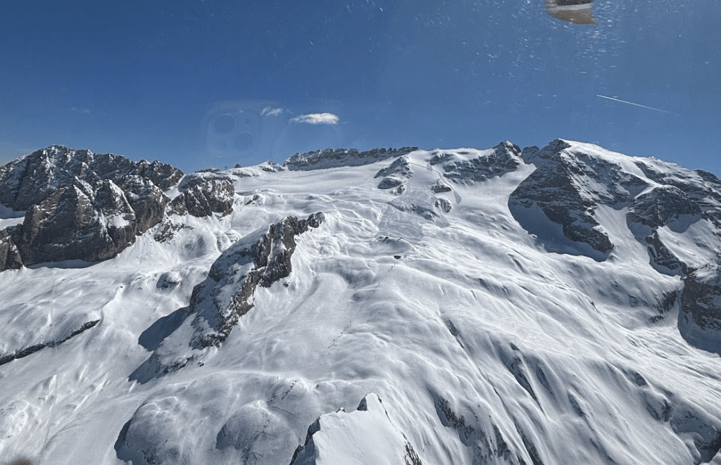 Travolti dalla neve, recuperati e salvati gli scialpinisti, un ferito. Le immagini della valanga sulla Marmolada.