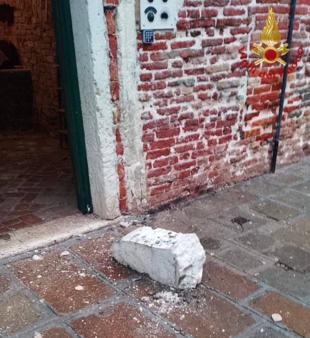 Venezia, caduta di un barbacane a Cannaregio: intervento dei Vigili del Fuoco e puntellamento per garantire la sicurezza pubblica.