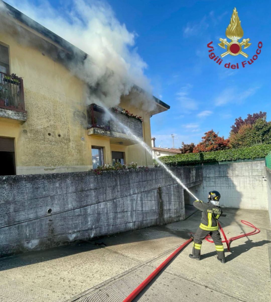 Paura a Ponzano Veneto, incendio in un appartamento: cinque intossicati, due donne e un cane salvati dai Vigili del fuoco.