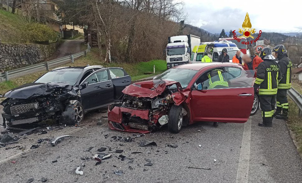Violento scontro frontale tra due auto: feriti seriamente i conducenti