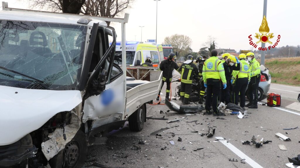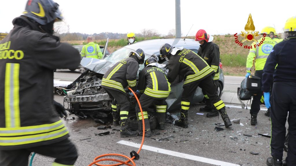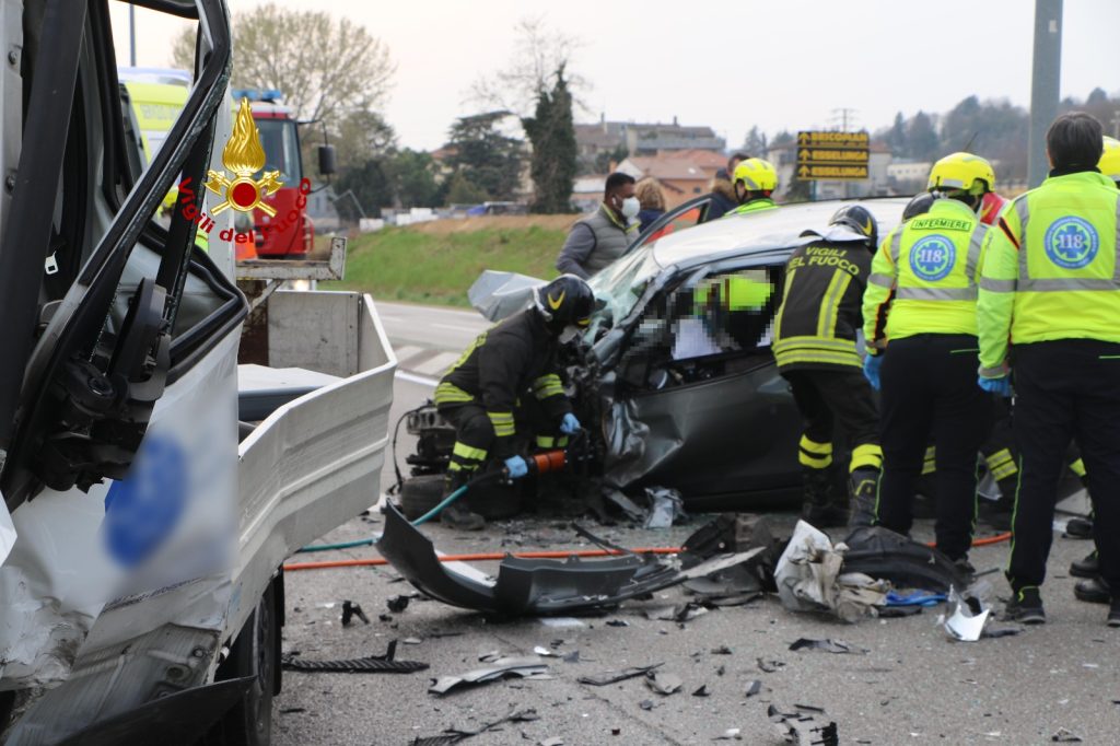 I pompieri arrivati dalla vicina sede, hanno messo in sicurezza i mezzi ed utilizzando cesoie, divaricatori e martinetti idraulici estratto dalla Toyota Yaris il passeggero e l’autista, che sono stati presi in cura dal personale sanitario del SUEM, stabilizzati e trasferiti in ospedale. Illeso l’autista del furgone cassonato.