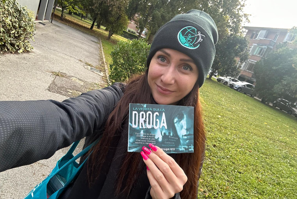 A Padova i volontari di Mondo Libero dalla Droga distribuiscono opuscoli informativi e organizzano conferenze gratuite per sensibilizzare sui rischi delle droghe.