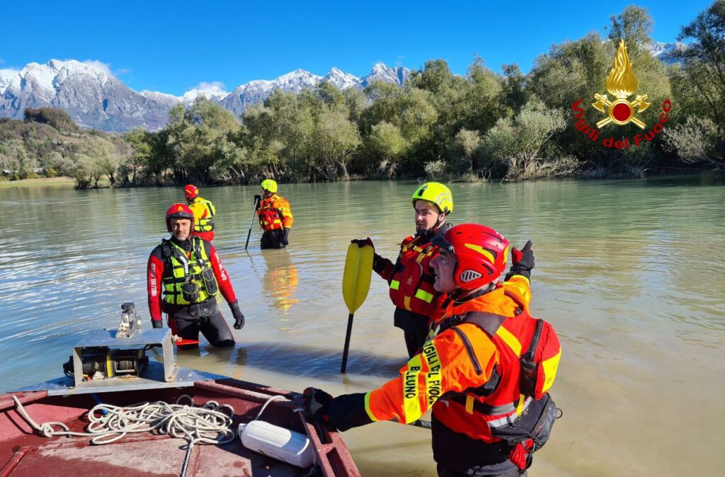 PUOS D’ALPAGO (BL). Continuano le ricerche del vigile del fuoco Walter Locatello, scomparso dopo essere caduto in un canale tre giorni fa. Oggi le ricerche si sono concentrate alla foce del Tesa Vecchio e nel lago di Santa Croce con più imbarcazioni tra cui due dotate di sonar. Presenti oltre 40 unità dei vigili del fuoco coordinate dal comandate Antonio del Gallo con squadre a terra, soccorritori fluviali e acquatici, sommozzatori, piloti di droni, esperti topografi e l’elicottero Drago 149 proveniente dal reparto volo di Venezia.